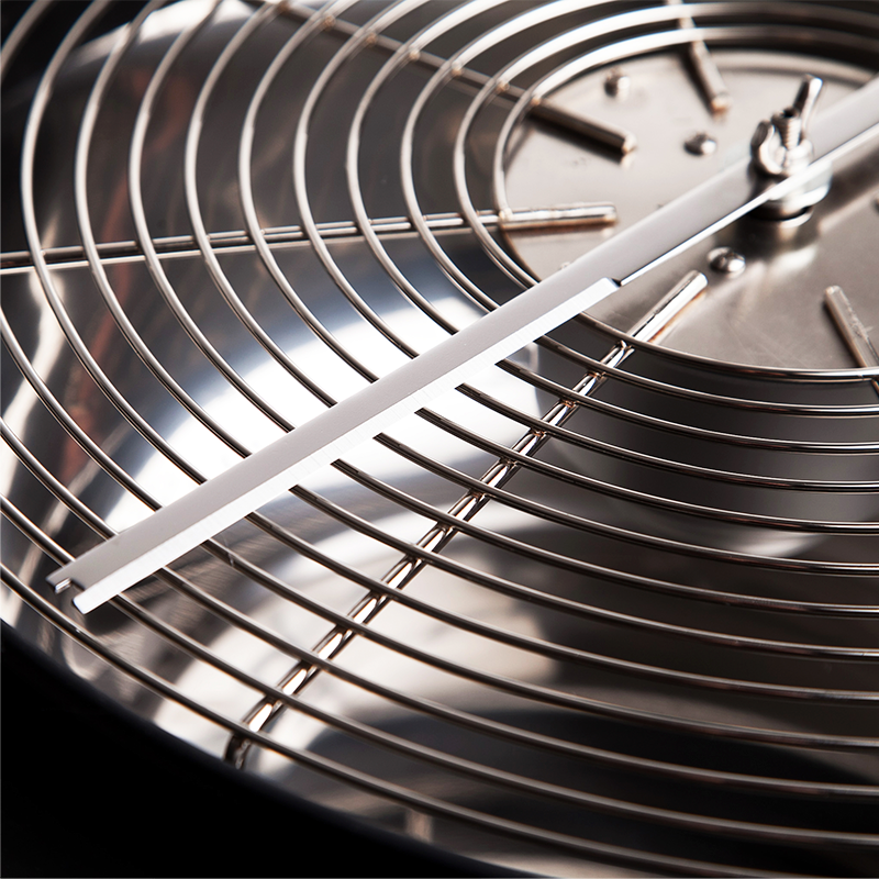 – Base de acero repujado, fácil de limpiar y regulable.